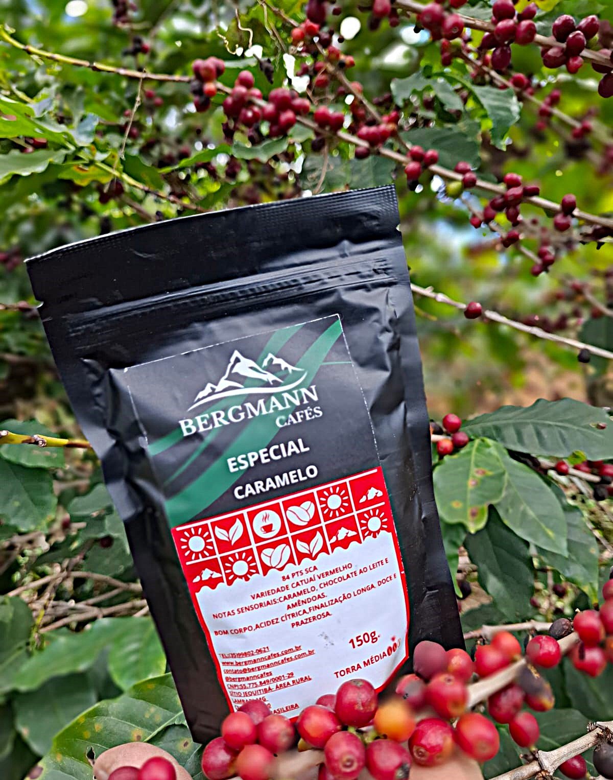 1 embalagem de 150g do nosso Café Catuaí Vermelho – Caramelo, 84 pontos na escala SCA – torrado e moído e