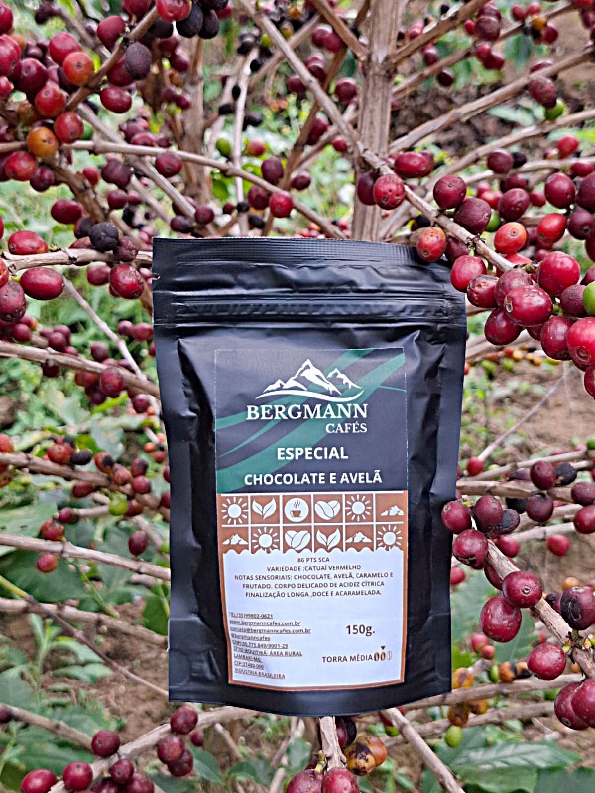 1 embalagem de 150g do nosso café Catuaí Vermelho – Chocolate e avelã, 86 pontos na escala SCA – torrado e moído.