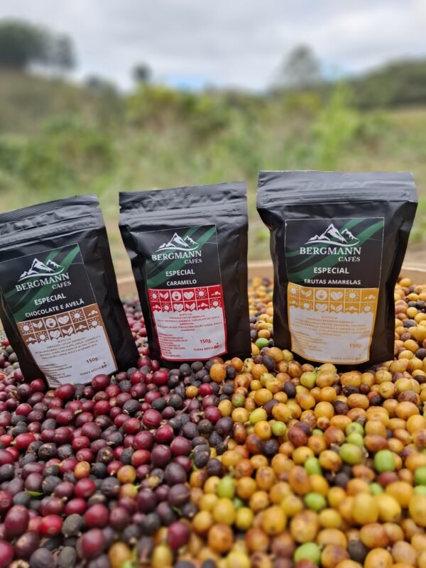Kit Degustação composto pelos nossos 3 cafés especiais em embalagens de 150g, o que permite que você faça uma viagem sensorial pelos nossos cafés sem gastar muito, com a garantia de torra média fresca, moagem média compatível com os métodos de preparo mais utilizados tradicionalmente e todos seguindo um rigoroso processo natural, produzidos a uma altitude de mais de 1200 metros da região da Mantiqueira de Minas.